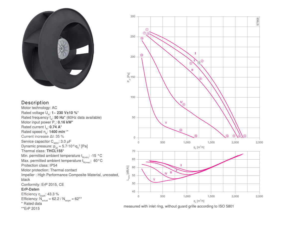 - عملکرد قدرتمند: این فن قادر به تأمین دبی هوای بالا و ایجاد فشار استاتیک قابل توجه برای پاسخگویی به نیازهای متنوع صنعتی است.